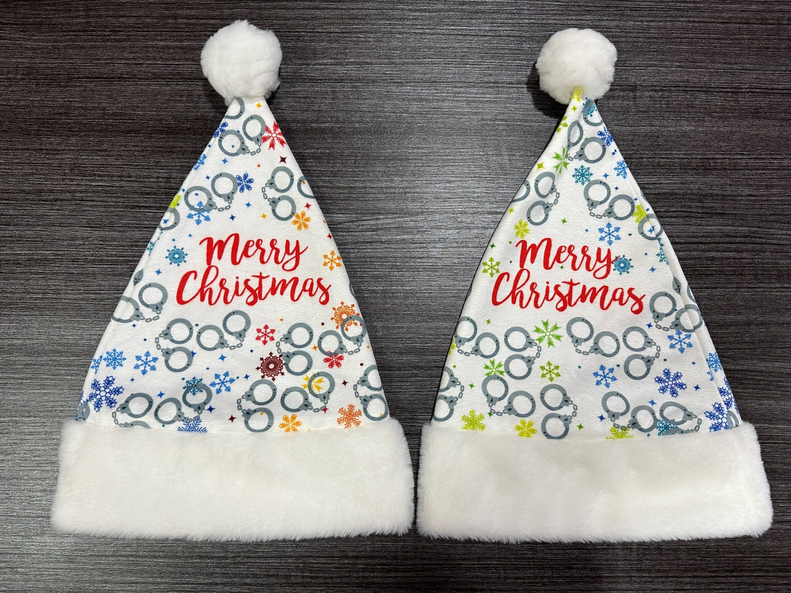 Santa Hats are a great way for employees to show their fun Holiday Spirit! This Full Color Police Santa Hat adds a fun twist to the traditional Santa Hat.